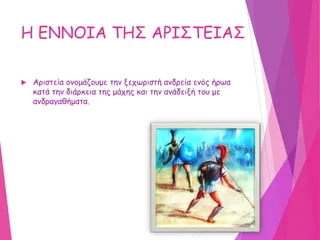 Αριστεία είναι η ξεχωριστή ανδρεία που επιδεικνύει κάποιος στη μάχη;