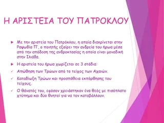 Η αριστεία του Πατρόκλου χωρίζεται σε 4 στάδια