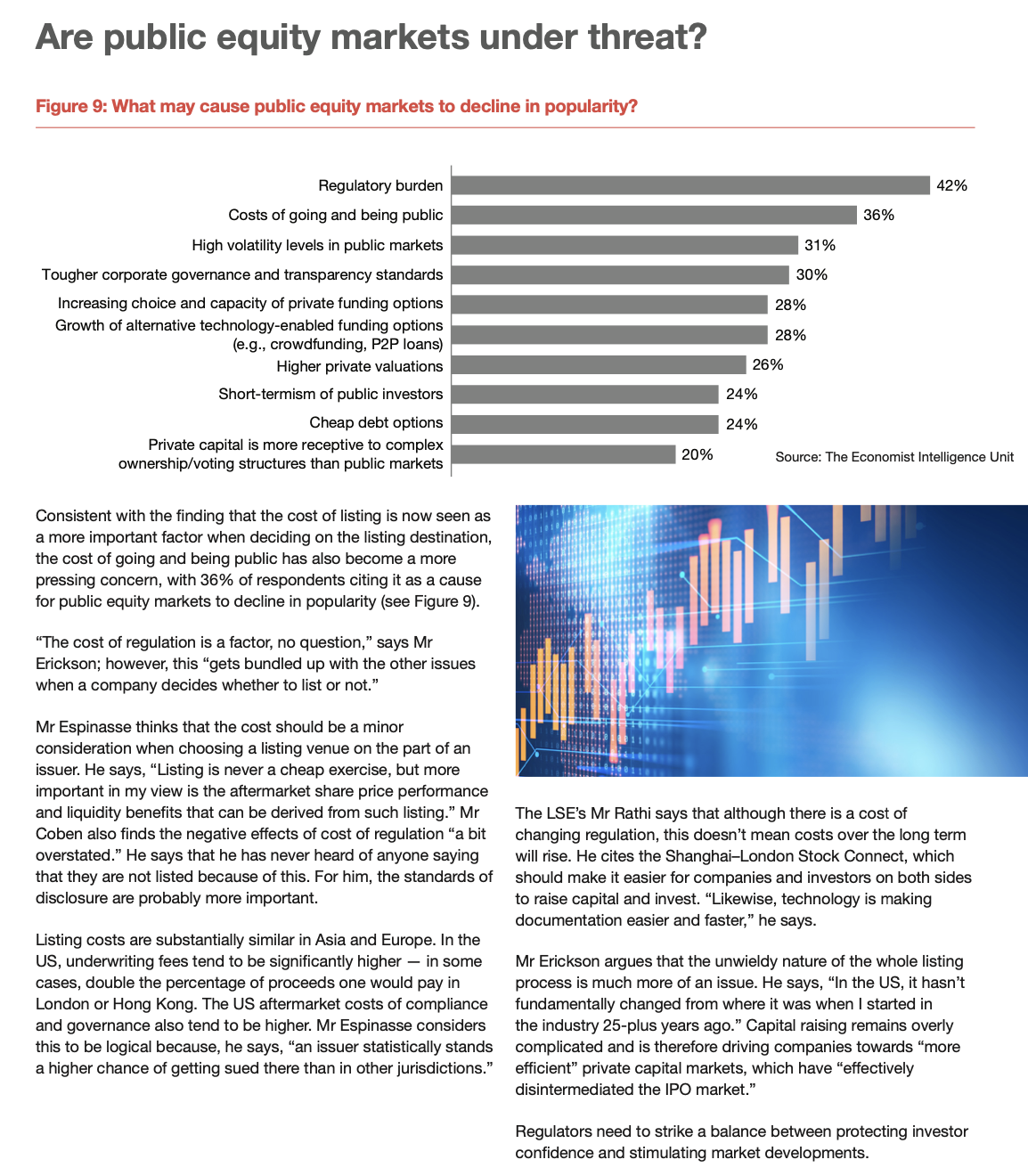 What challenges does Mr. Erickson identify regarding the listing process, particularly in the US?