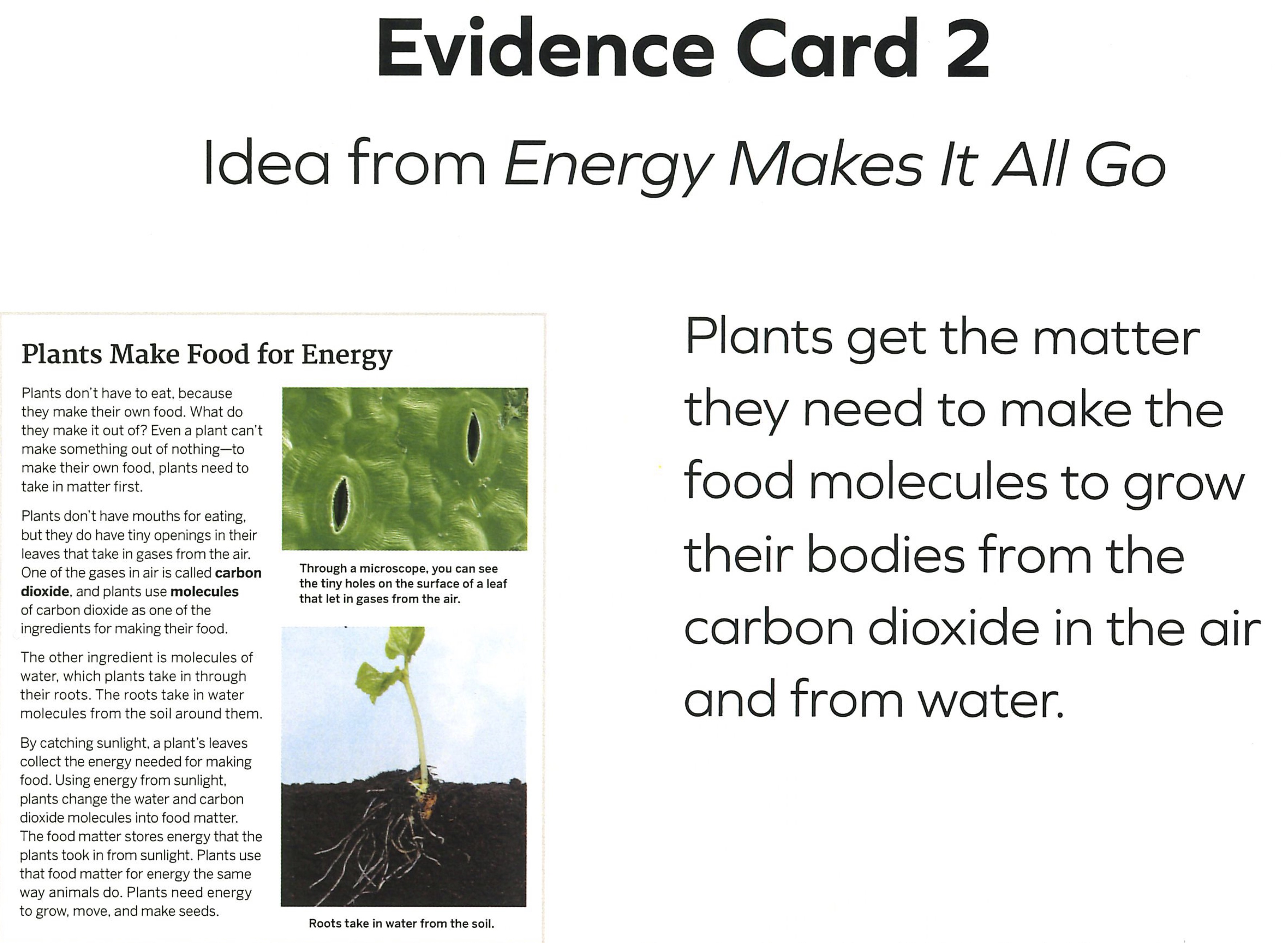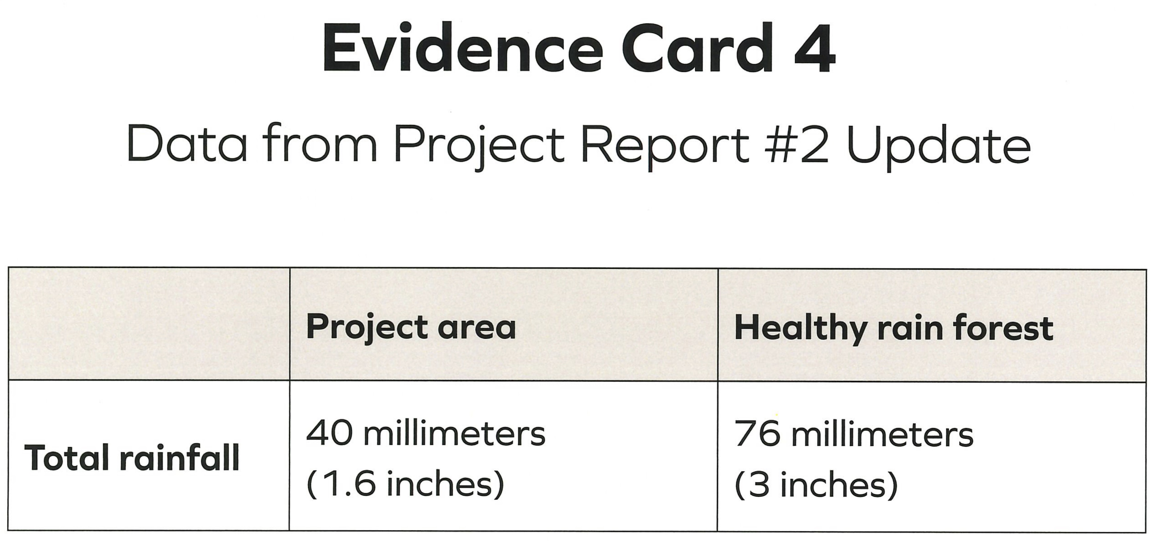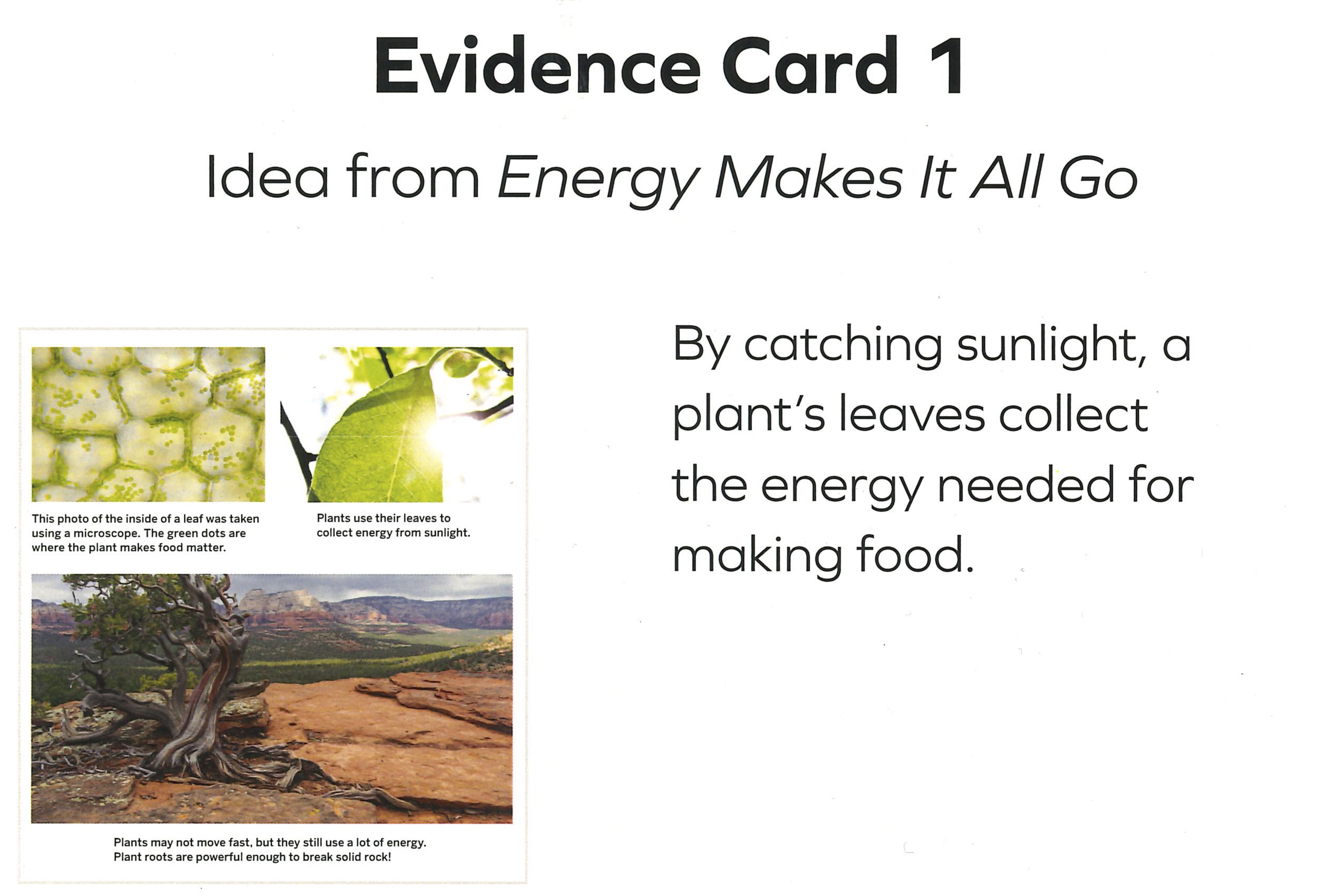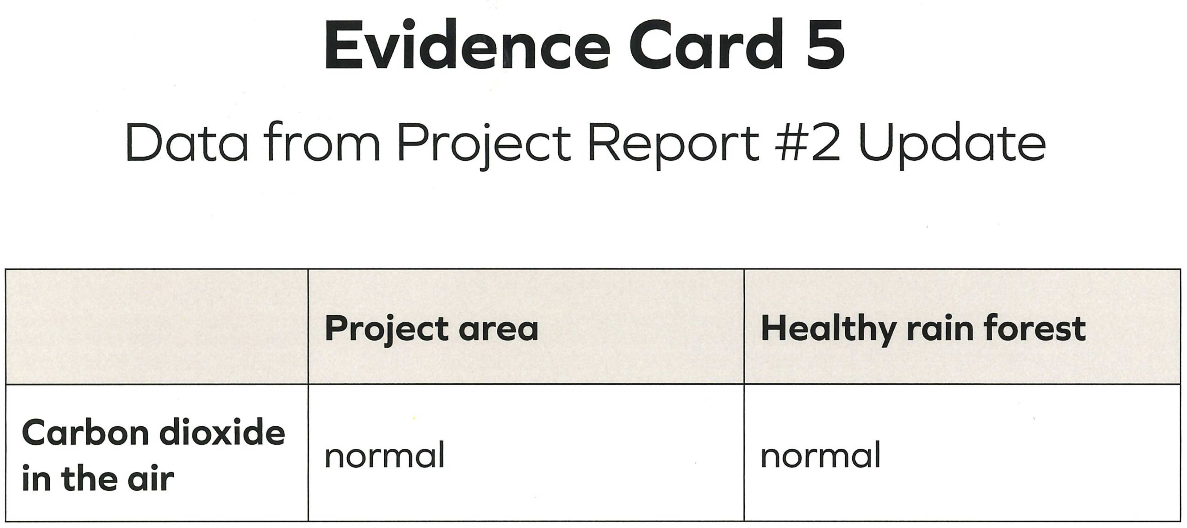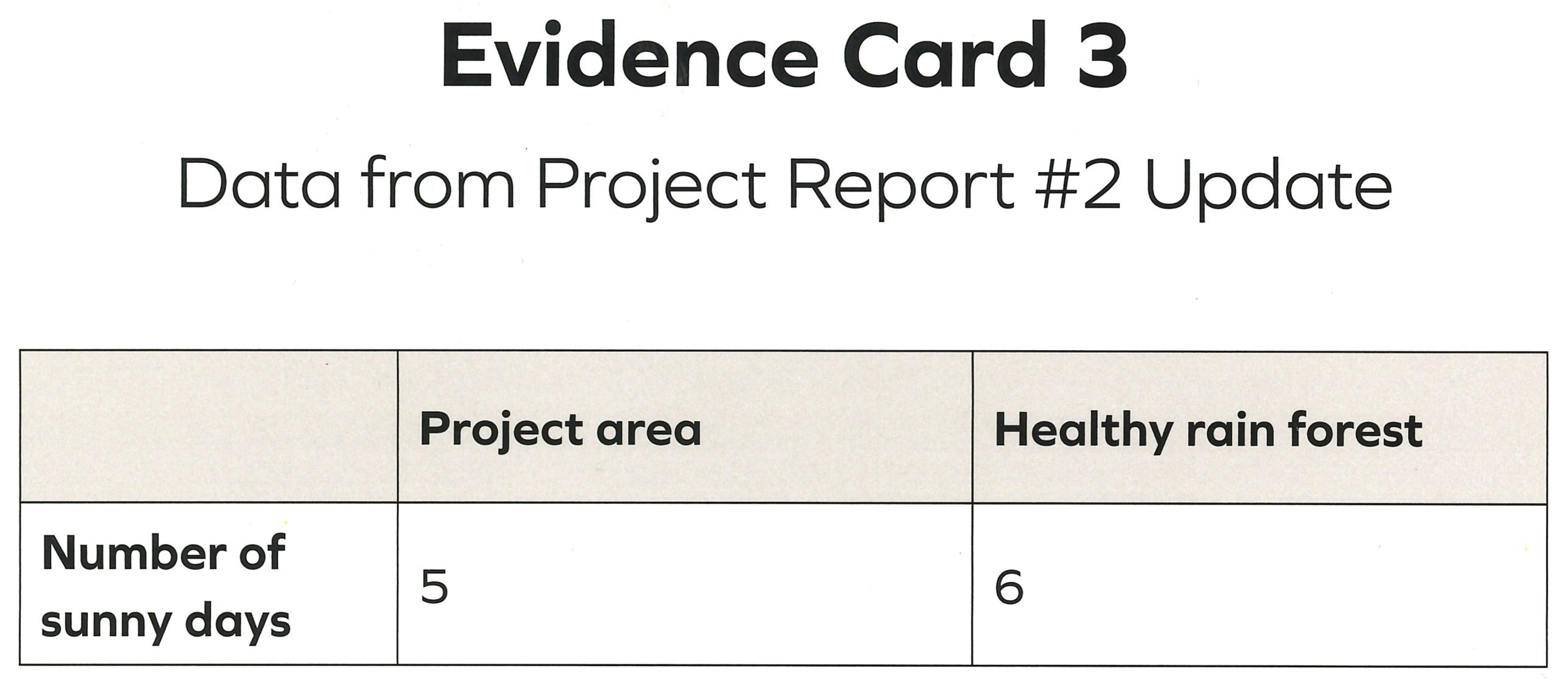 The cecropia trees aren’t growing and thriving because _____. Plants make food by _____. Evidence card 3 shows _____. Evidence card 4 shows _____. Evidence card 5 shows _____. This means cecropia trees aren’t growing because _____.