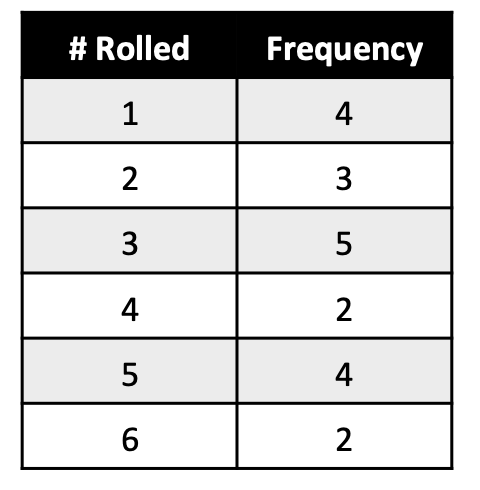 A fair dice was rolled 50 times and the results are shown on the table below. For