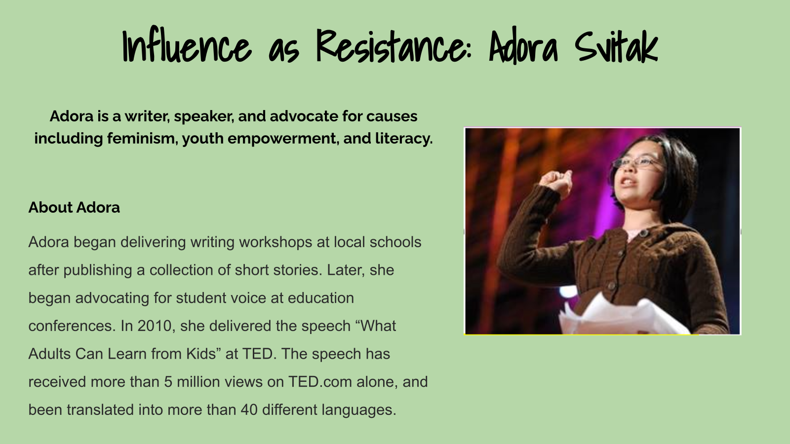 How is this speech an example of resistance? What -ism or -phobia is being resisted?
