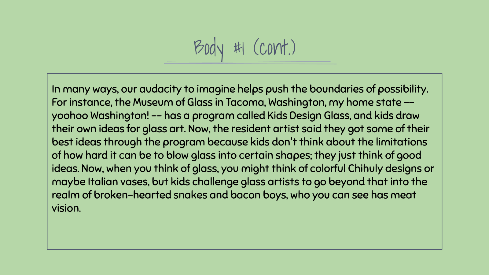 What are some reasons she provides to support her claim? (ie: Why does she think this is important or needed?)