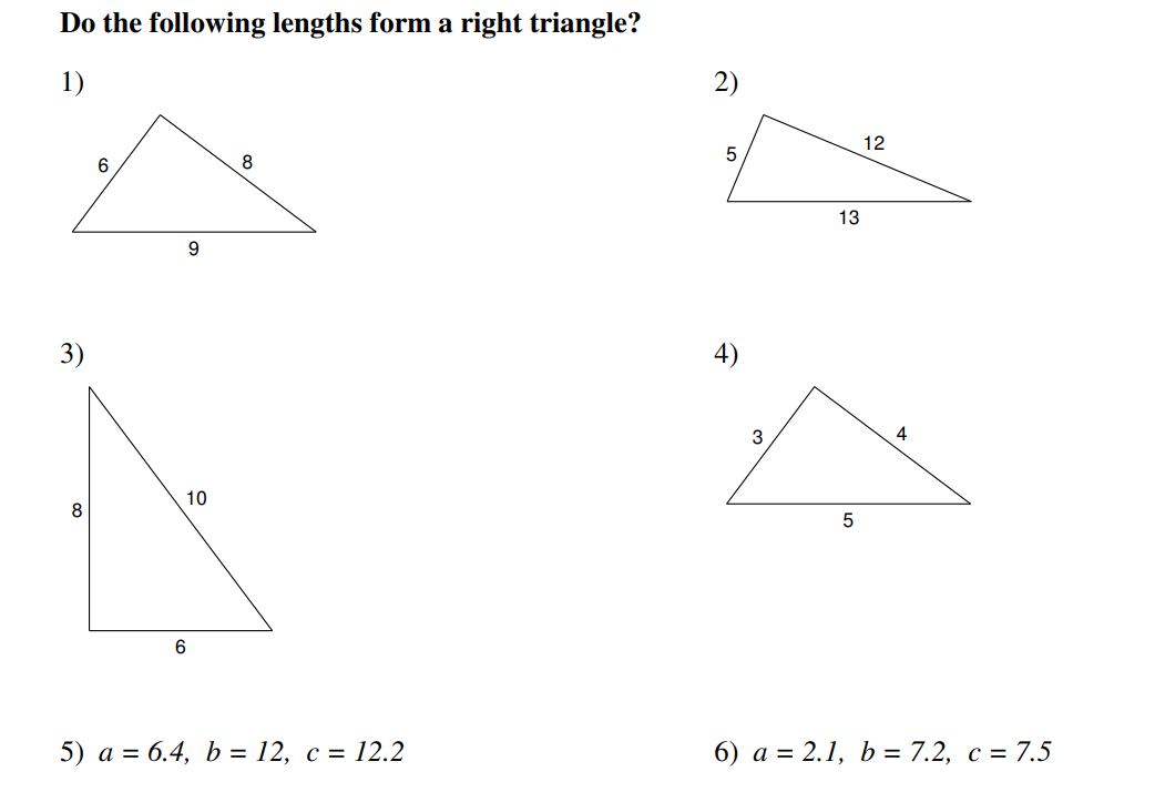 SHOW YOUR WORK IN YOUR PACKET ON ALL PROBLEMS. ON PROBLEMS 7-22, USE A CALCULATOR TO ROUND SQUARE ROOTS TO THE NEAREST TENTH.