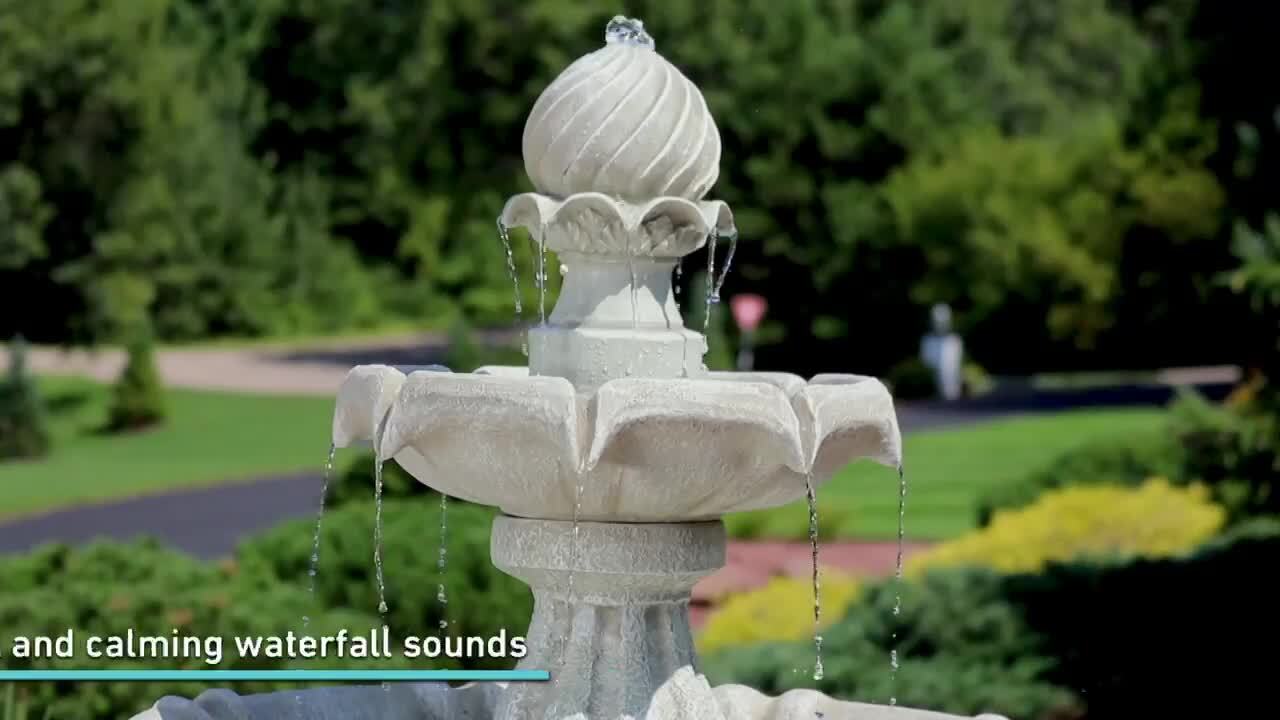 It looks like the rate of water from the top of the fountain is more than the rate of water falling from the one of the outlets on the first basin. What is the relationship between all the outlets of the first basin and the rate of water from the top of the fountain?