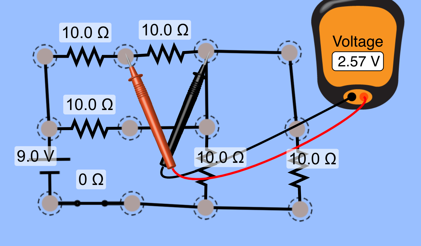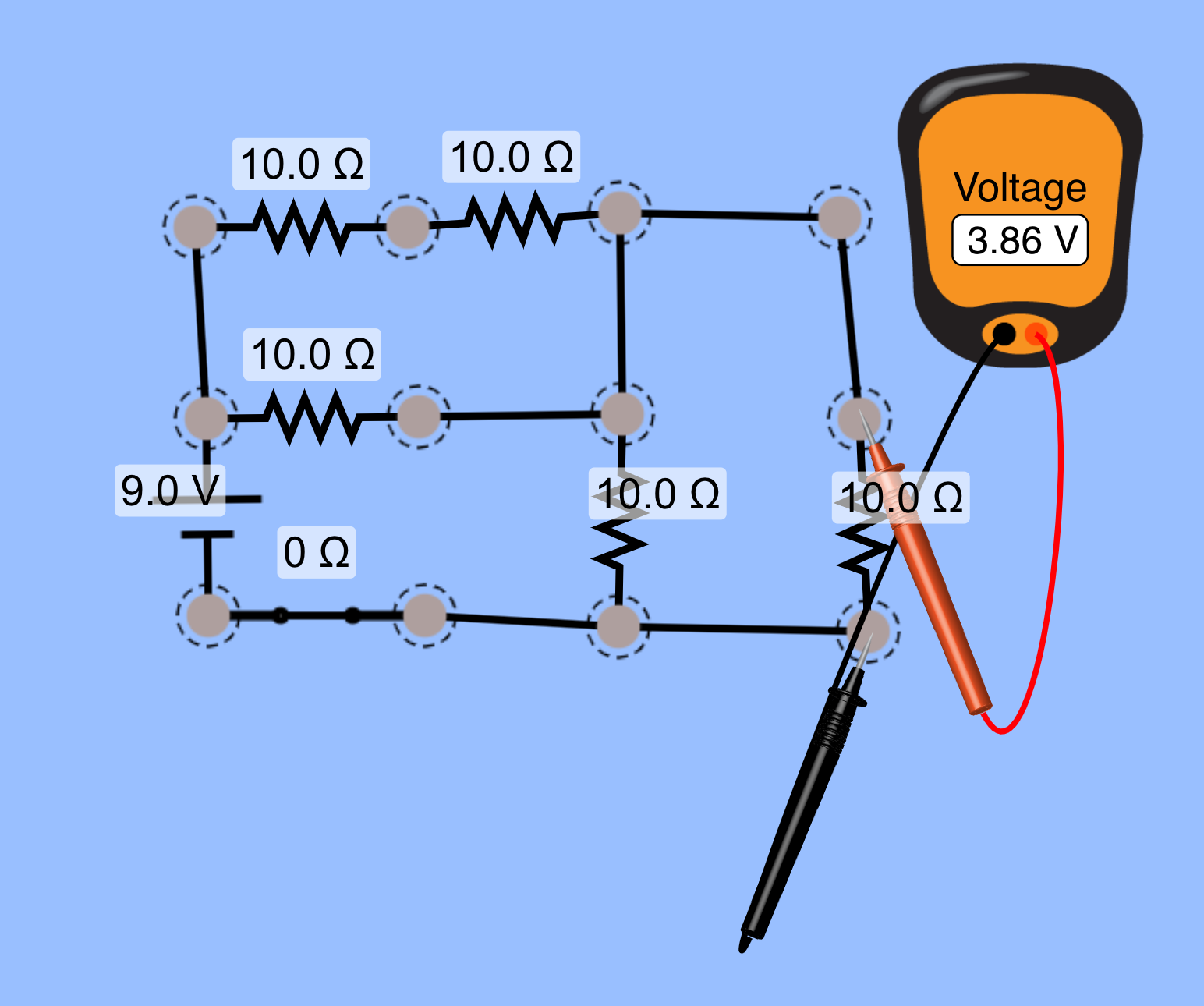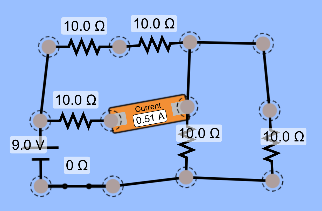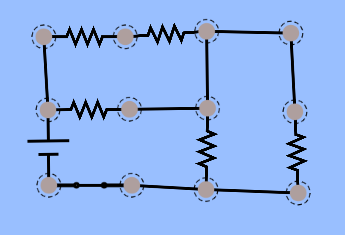 All of those are true for simple circuits like the diagram shown above, but typically our circuits are more complicated. For instance: