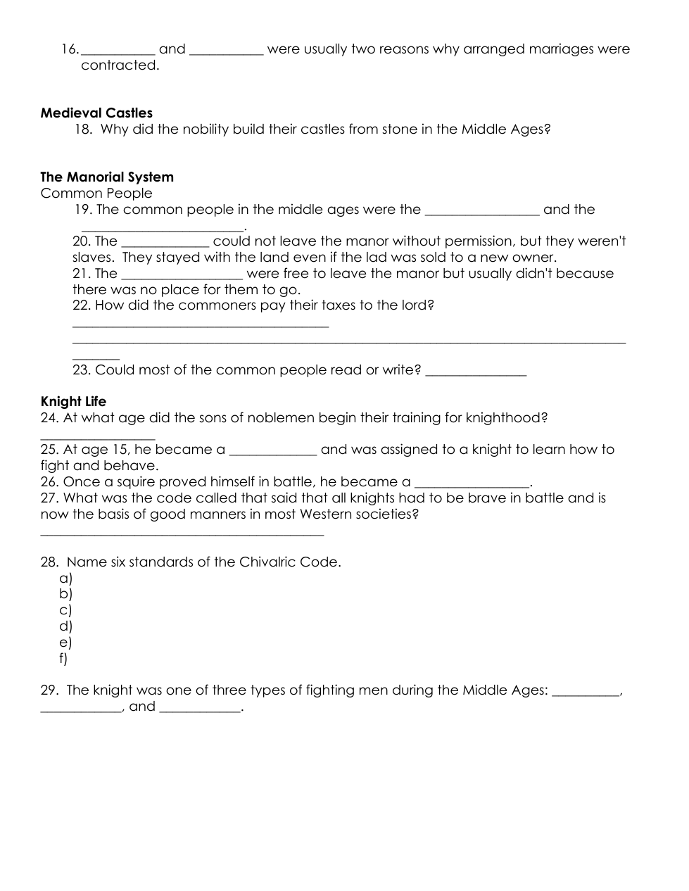 Life of Nobility --- Kings, Lords, Ladies, and Knights