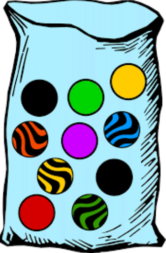Look at the bag of marbles below. What is the probability that you will draw a black marble?