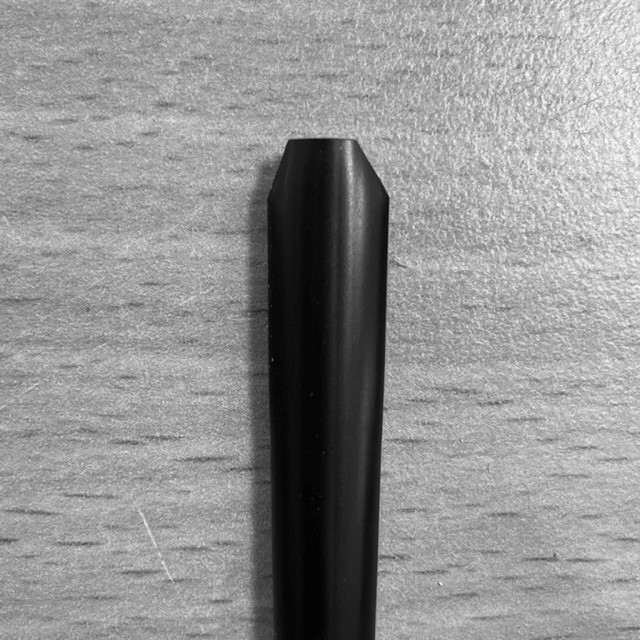 Pak een rietje en druk ongeveer 2 cm van het einde plat. Druk dit stuk goed plat met je nagel op de tafel zodat het uiteinde plat blijft. Knip aan het platte uiteinde ongeveer 2 mm van de hoekjes schuin af.