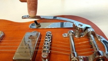 Laat de onderste snaar trillen en duw de zilvere hendel naar beneden. Wat gebeurt er met de toon?