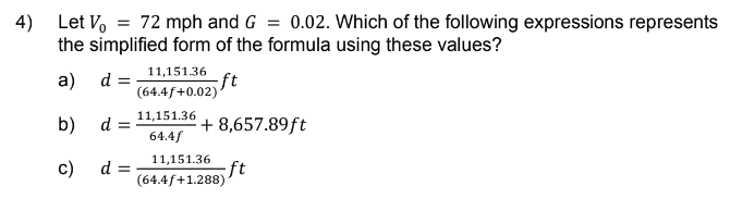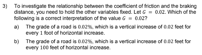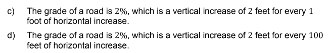 Roadway grade percent written as a decimal | arrow_right_alt | f |