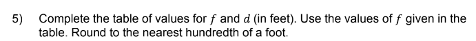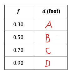 Initial Velocity in feet per second | arrow_right_alt | d |