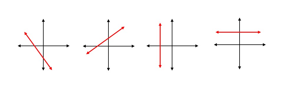 Drag and drop the word that best describes the slope of each line graphed below.