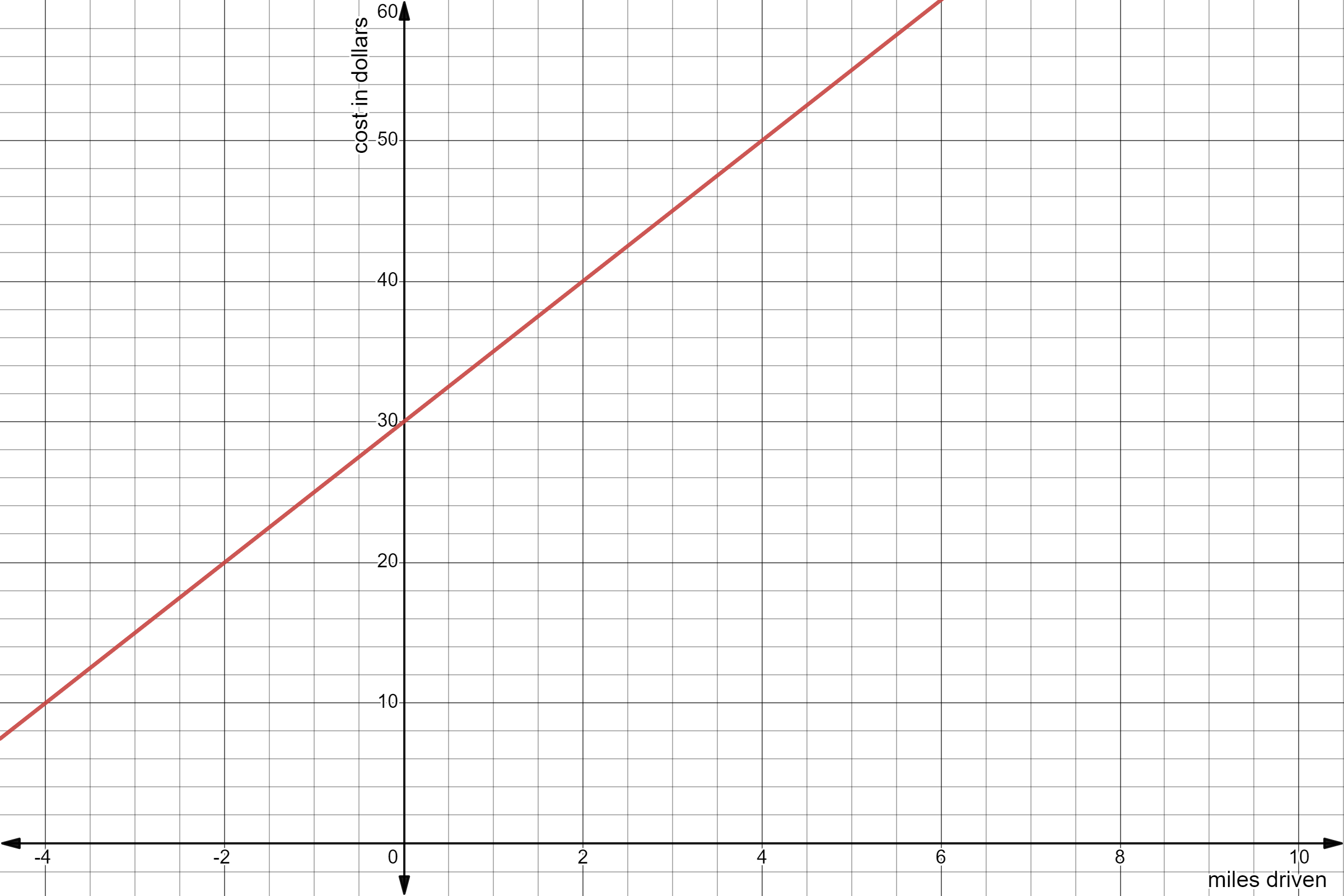 The graph below displays the cost of renting a car for a day based on how many miles are driven that day.