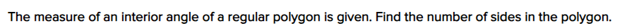 If n = 24, then the exterior angle is _______ and the interior angle is _______ .