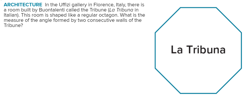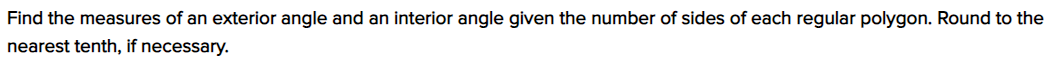 If n = 13, then the exterior angle is _______ and the interior angle is _______ .