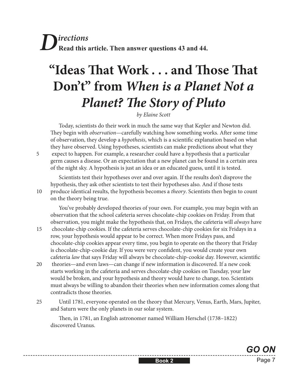 How do lines 25 and 26 contribute to the development of a key idea in the article “‘Ideas That Work . . . and Those That Don’t’ from When is a Planet Not a Planet? The Story of Pluto”? Use two details from the article to support your response.
