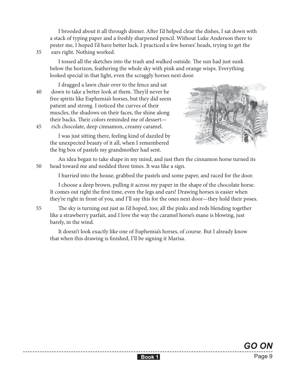 How does Marisa change while watching her neighbors’ horses?