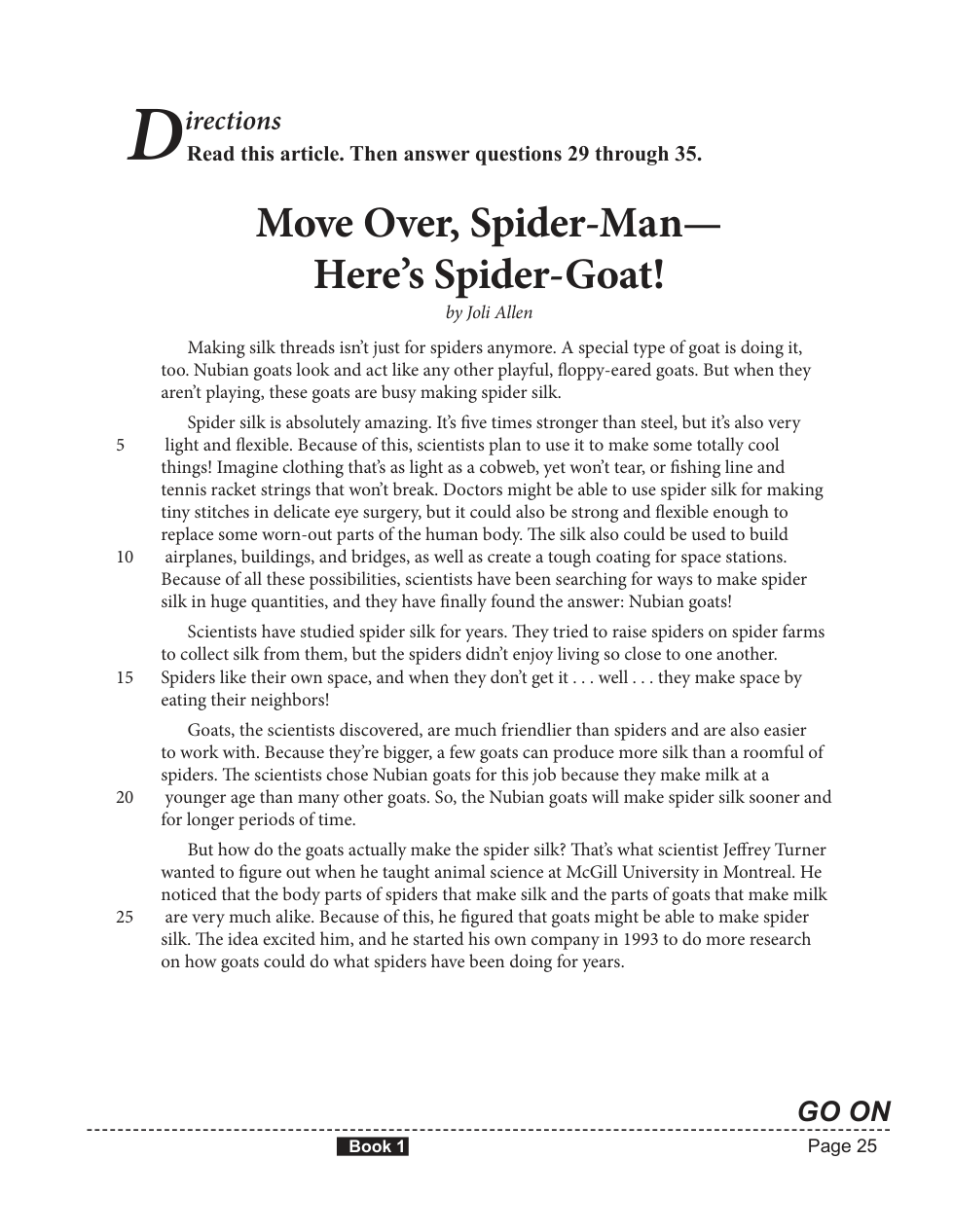 In lines 4 through 12, the author explains why scientists are trying to find a way to produce spider silk using goats by showing