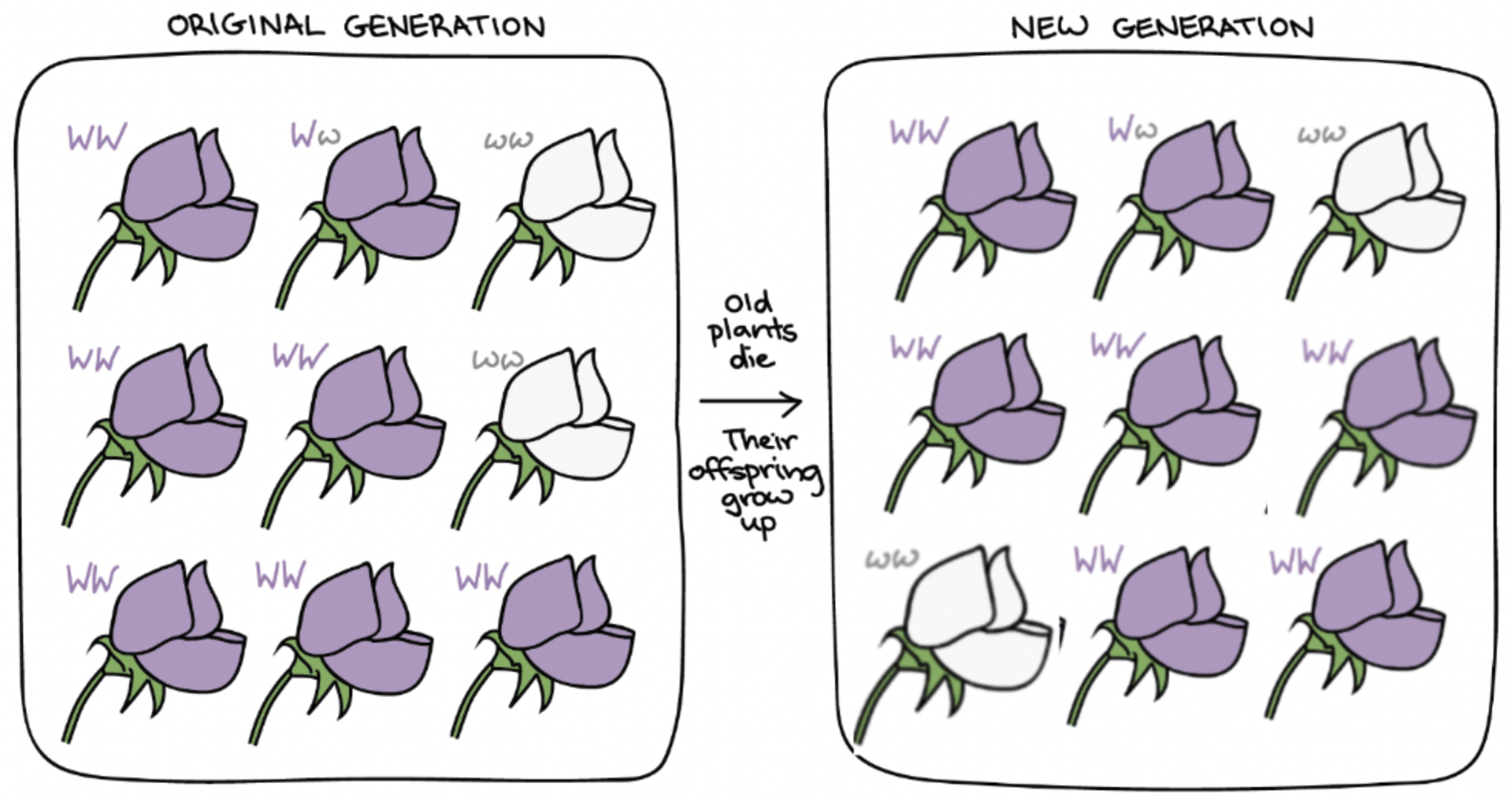 This follows an introduction to conditions of Hardy-Weinberg. Students should be familiar with Punnett squares and the variables of HWE before beginning. They do not need to have seen the formula yet.