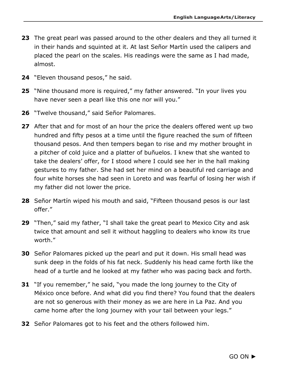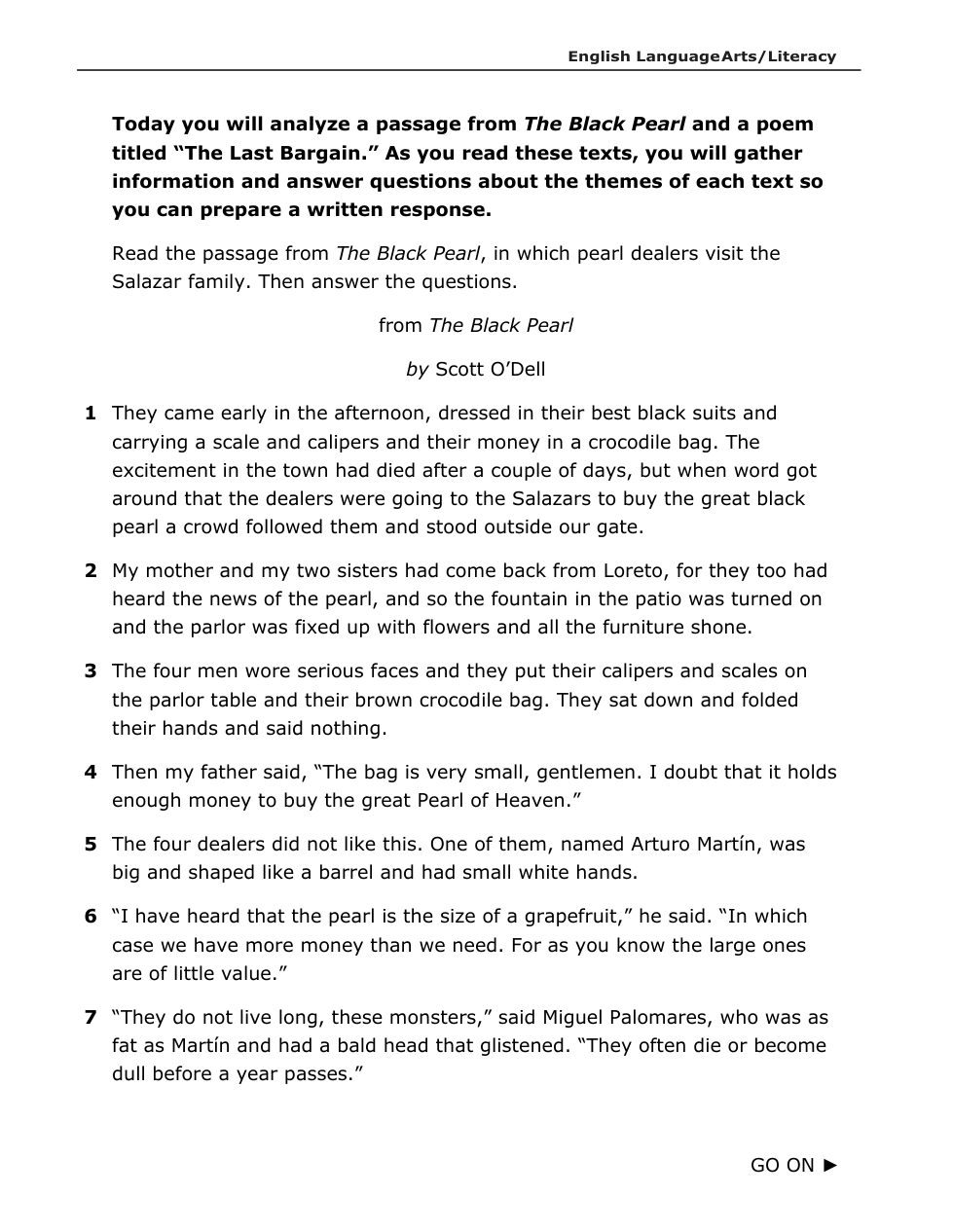 You have read a passage from The Black Pearl, which is told from a child's point of view. Retell the story from another point of view (the mom, the dad, or one of the buyers). Be sure to include the character's thoughts and feelings throughout the events.