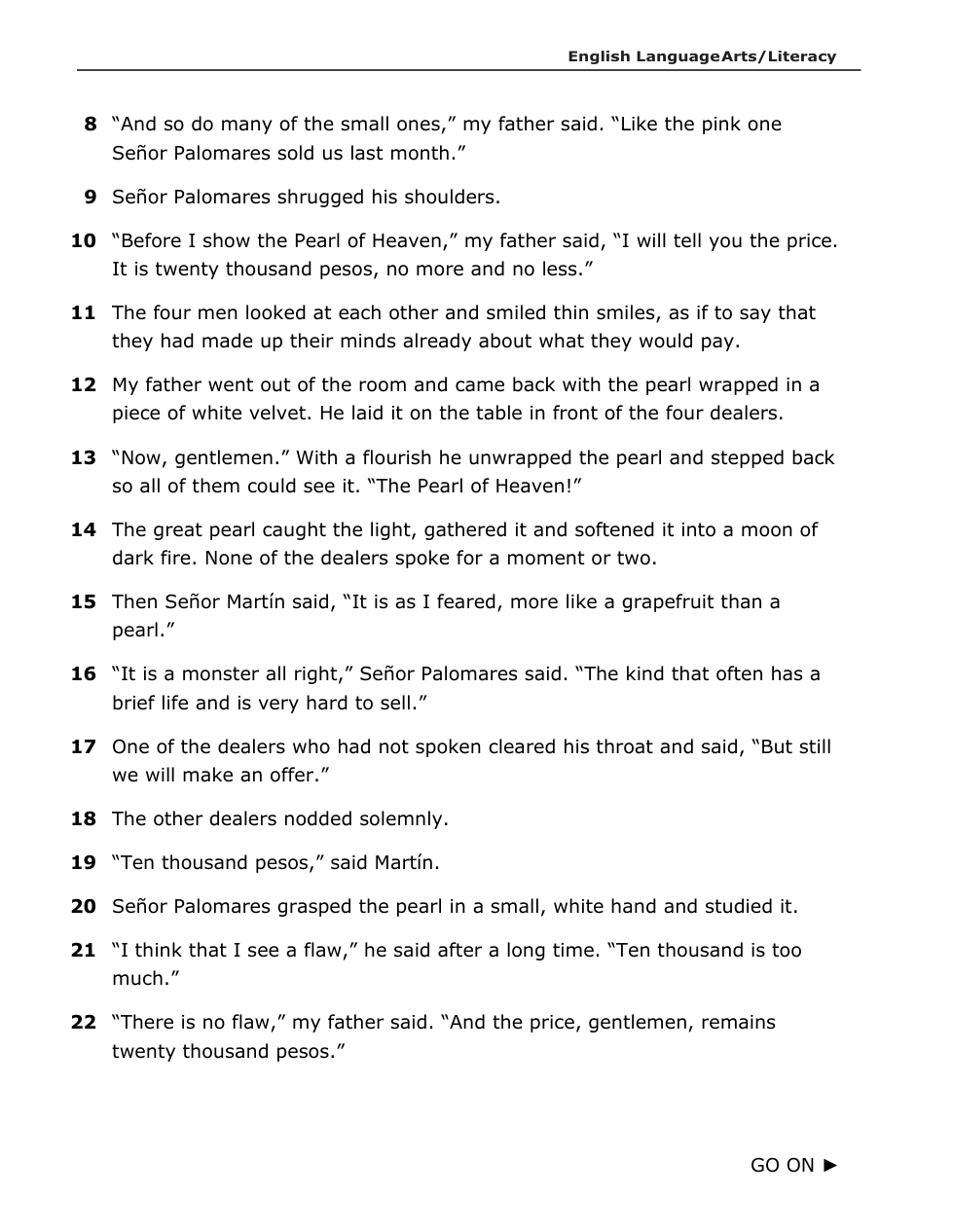 In paragraphs 6 and 7, the author uses figurative language to describe the pearl. Identify the types of figurative language used and explain their impact.