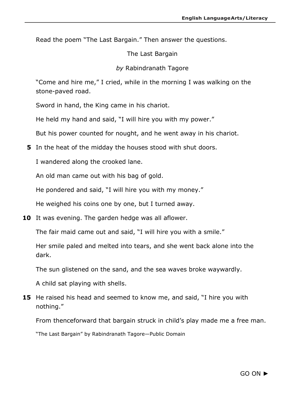 Part A: What does line 9 of "The Last Bargain" reveal about the speaker?
