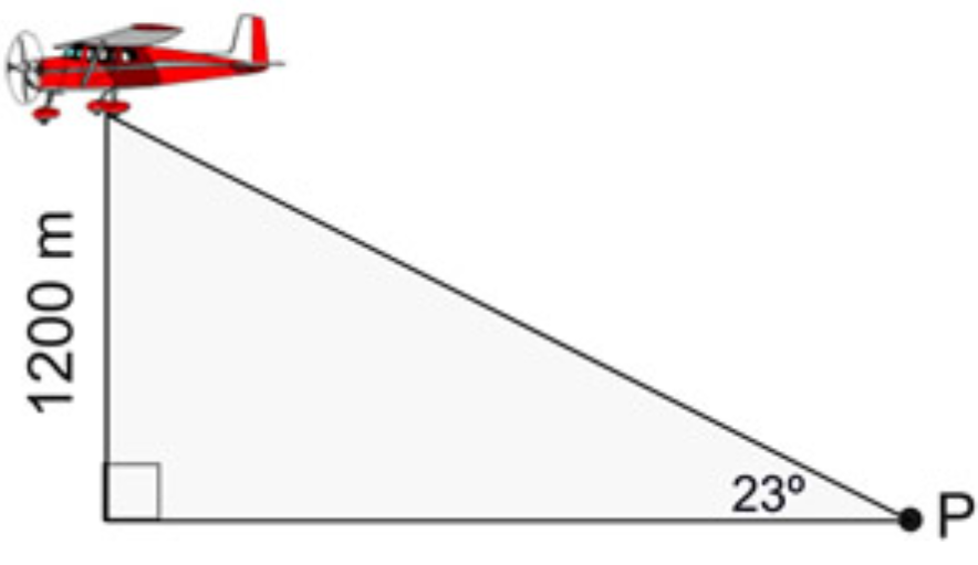 From point P on the ground, the angle of elevation of an airplane is 23º. The altitude of the plane is 1200 meters. What is the distance from point P to the airplane, to the nearest tenth of a meter?