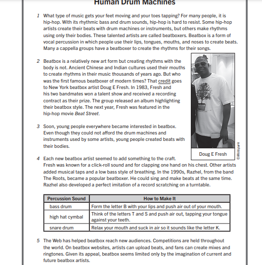 Based on the information in paragraph 2, what conclusion can the reader draw about Doug E Fresh? Select TWO correct answers.