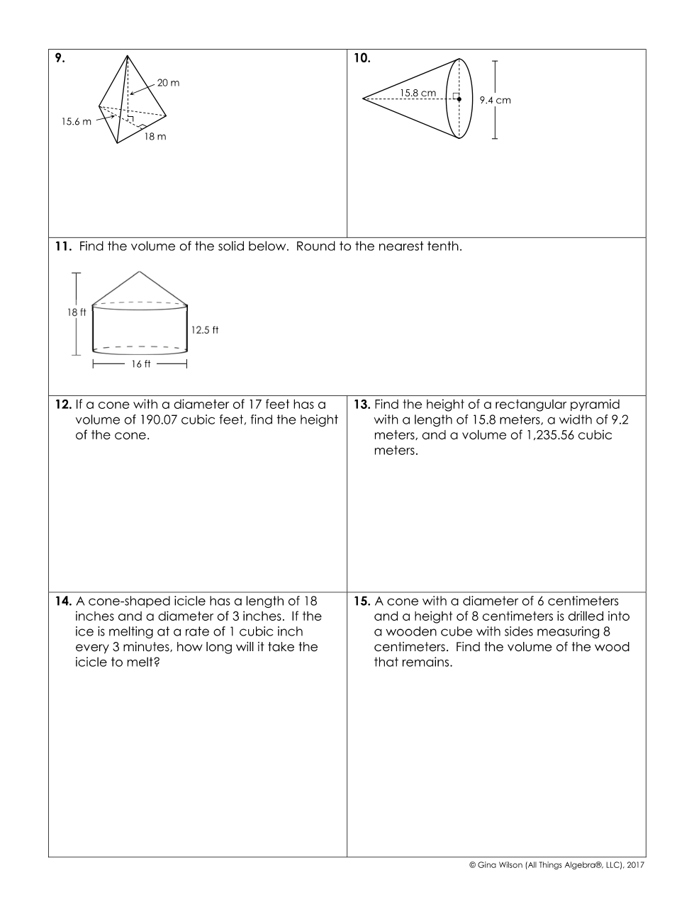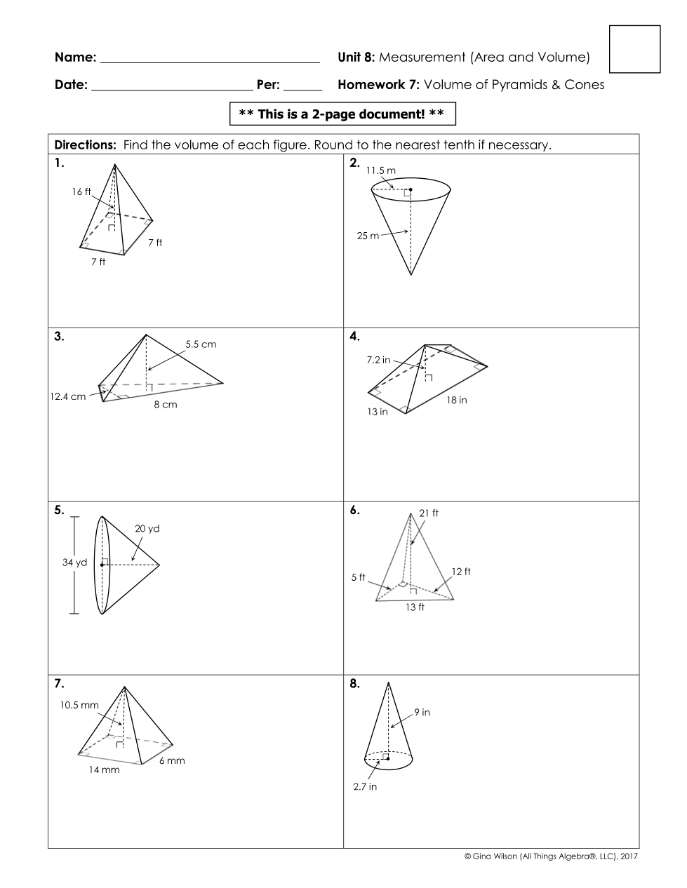 Homework 8-3: Volume of Pyramids and Cones
