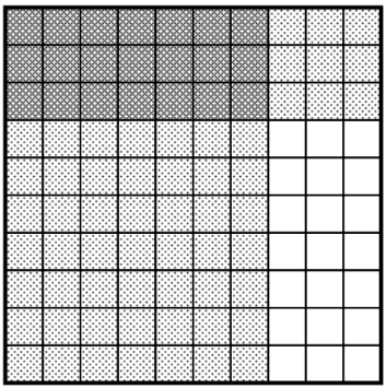 Which model is shaded to represent 0.7 × 0.3 = 0.21?