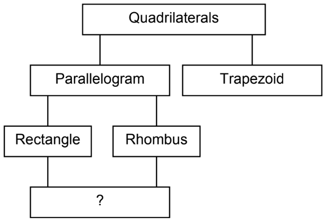 The graphic organizer shown can be used to classify quadrilaterals. The name of one subset is missing.