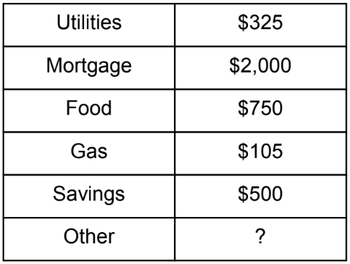Mr. Carter’s net income last month was $4,988. The table shows the budget he created for the month.