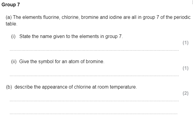 State the name given to the elements in group 7.