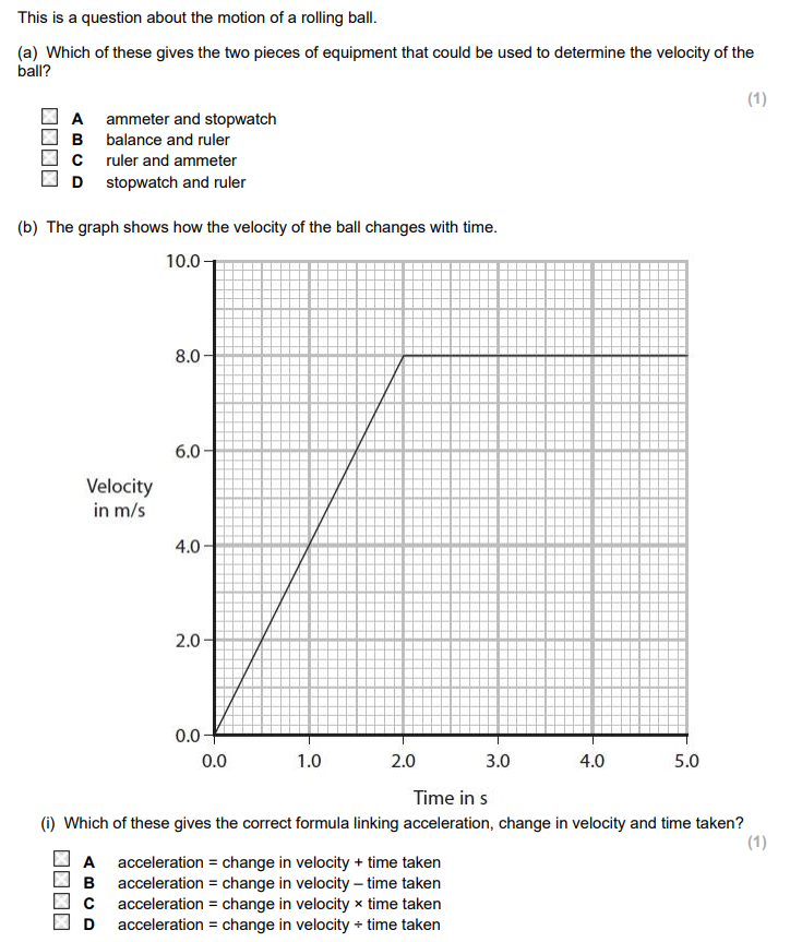 Which of these gives the two pieces of equipment that could be used to determine the velocity of the ball?