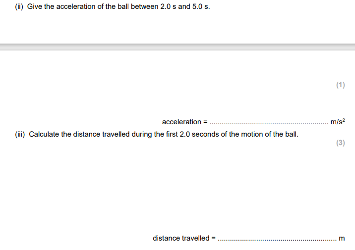 Calculate the distance travelled during the first 2.0 seconds of the motion of the ball.