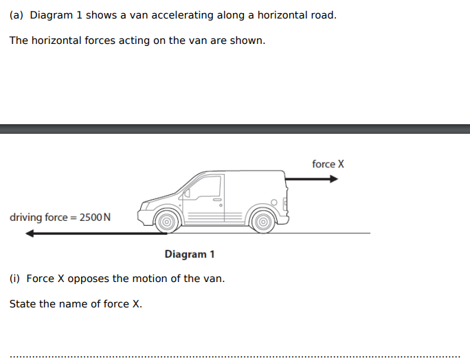 Force X opposes the motion of the van. State the name of force X