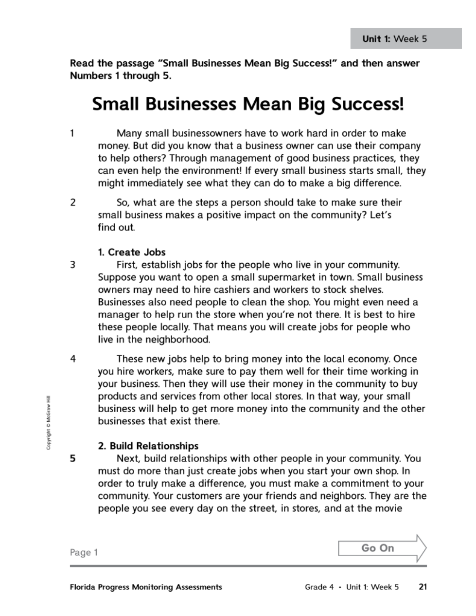 Small Businesses Mean Big Success (Unit 1 Week 5)