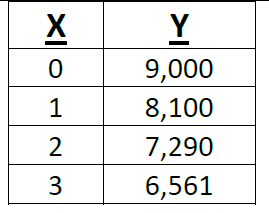 My "Clown at your Party" company purchases a van to drive to parties for $20,000. The value of the van depreciates at a rate of 9% each year. Write an exponential function to model the situation.