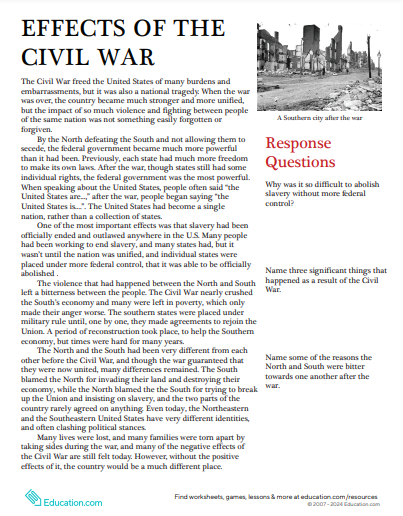 Name three significant things that happened as a result of the Civil War.