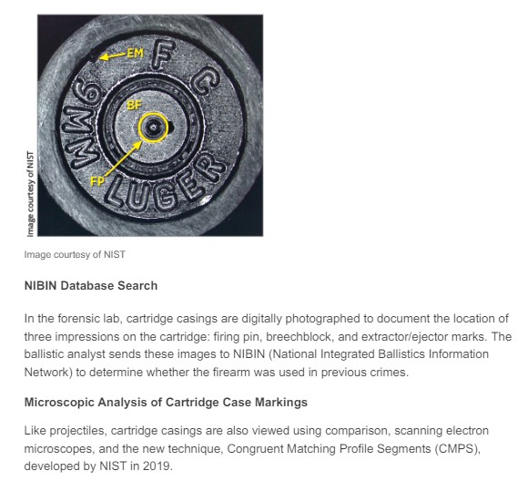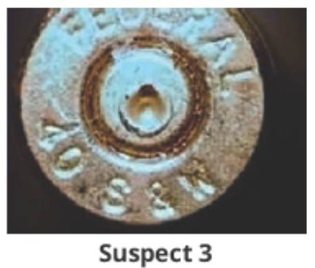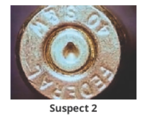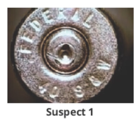 Using what you know about firing pin impressions, breechlock faces, extractor marks, and cartridge casings, match the following cartridge casings to a particular suspect's firearm.
