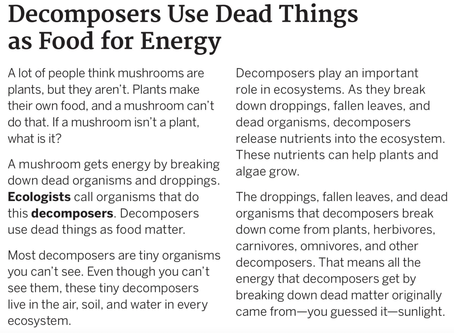 Describe how each organism in this ecosystem must get its energy (1 point each):