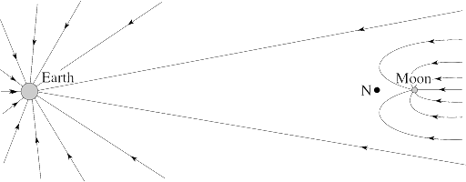 We started electrostatics by comparing the force between two charges to the gravitational force between two planets. We discussed that the equations for the forces themselves are very similar. Consider the following image showing a gravitational field near the earth and the moon.
