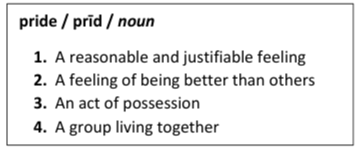 Which definition of pride is used in paragraph 2?