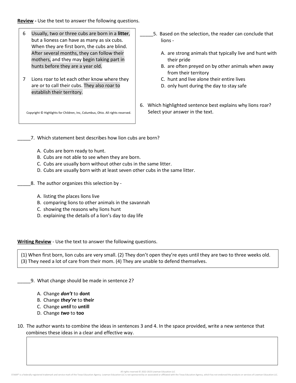 Based on the selection, the reader can conclude that lions -