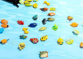 The toys floating in water are held up by