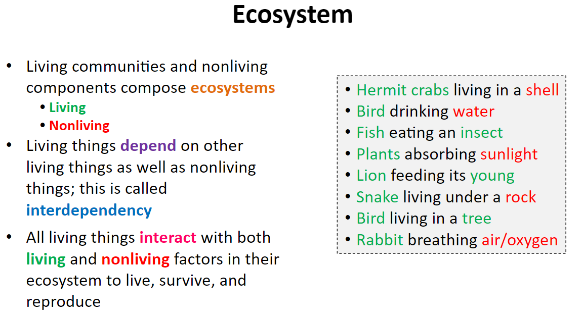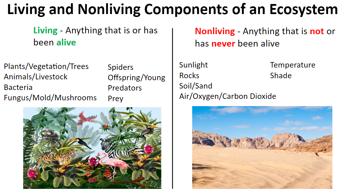 An ecosystem is composed of both living and nonliving components.