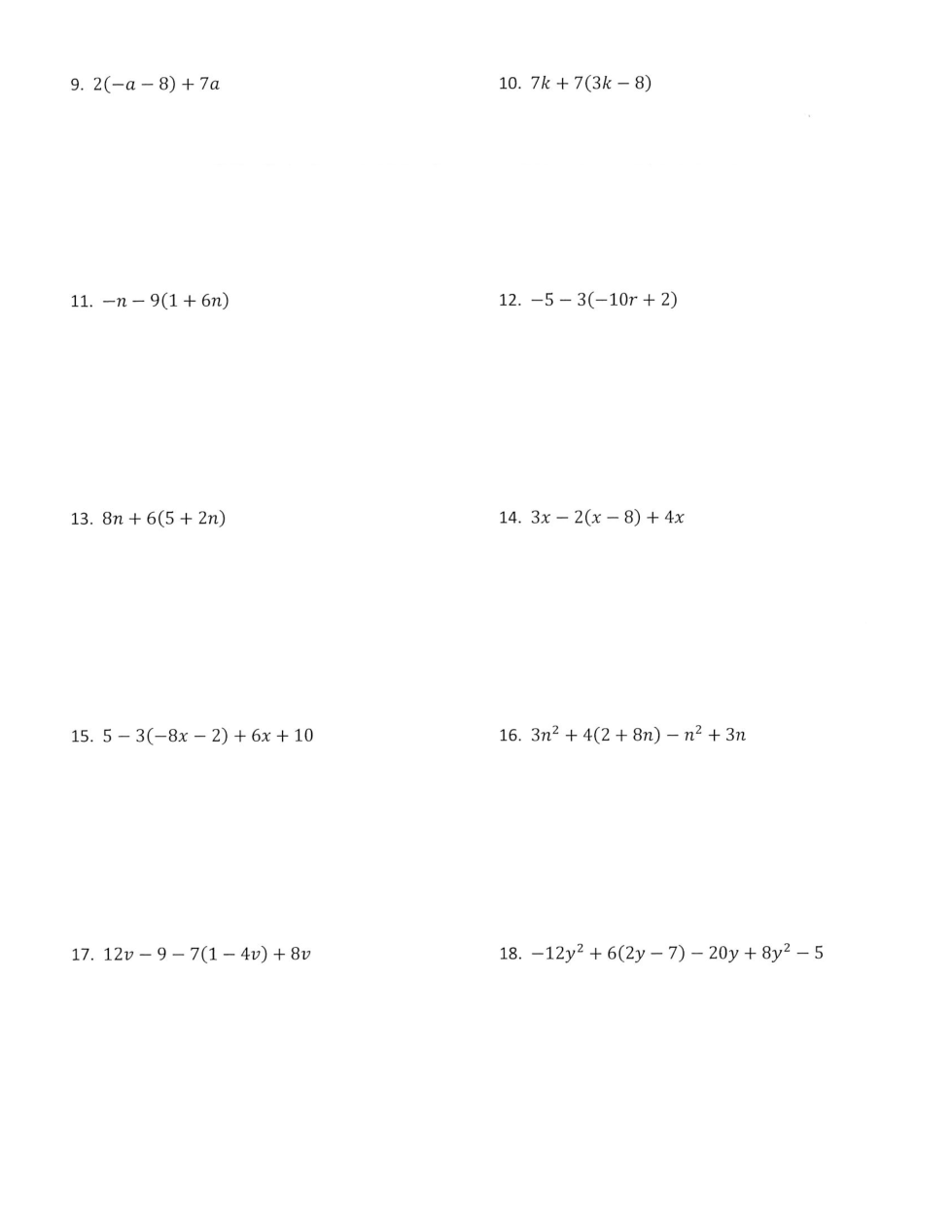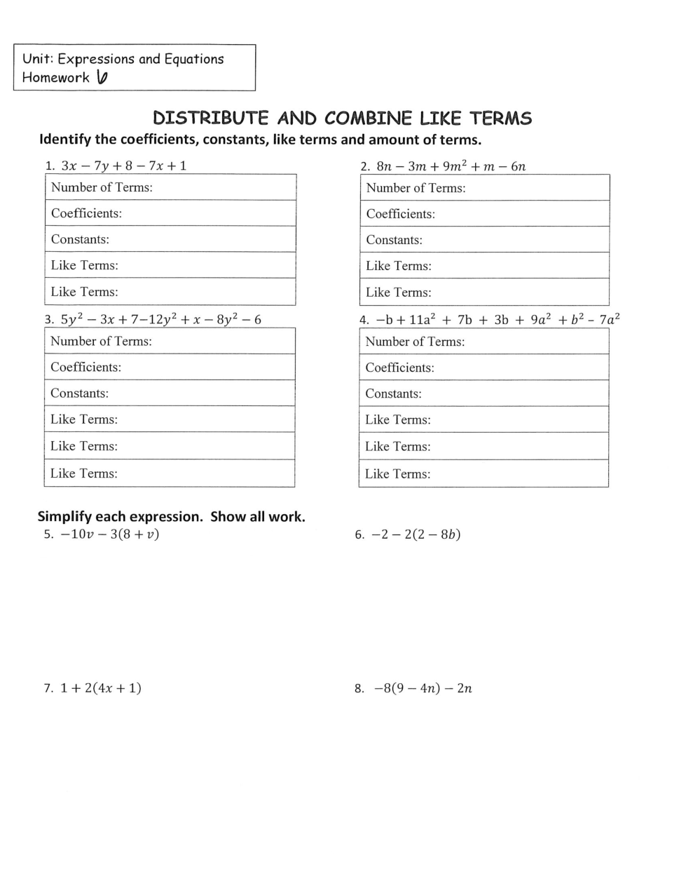 Homework #6 distribute and combine like terms