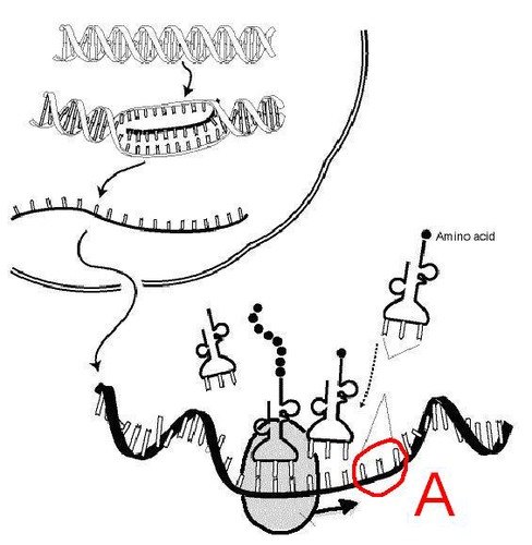 A single stranded nucleic acid that plays a role in protein synthesis | arrow_right_alt | Transcription |