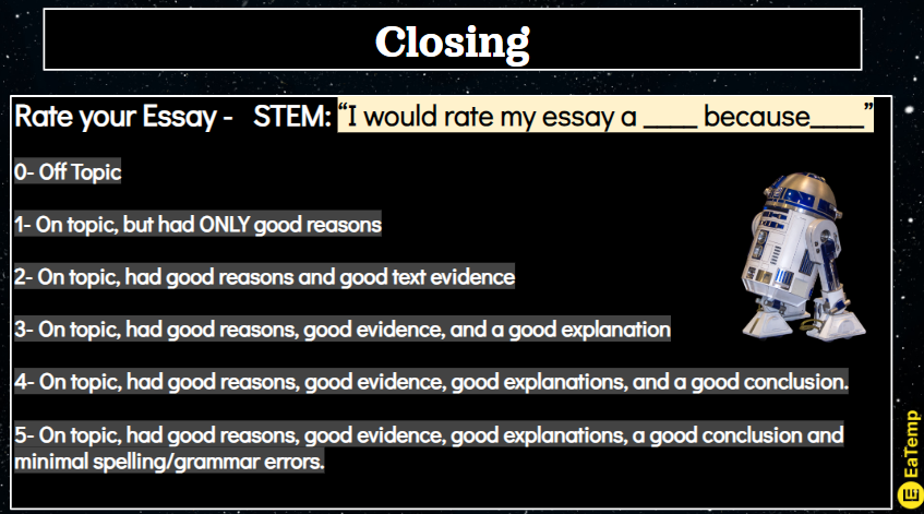 I would rate my essay a ______ because _____.